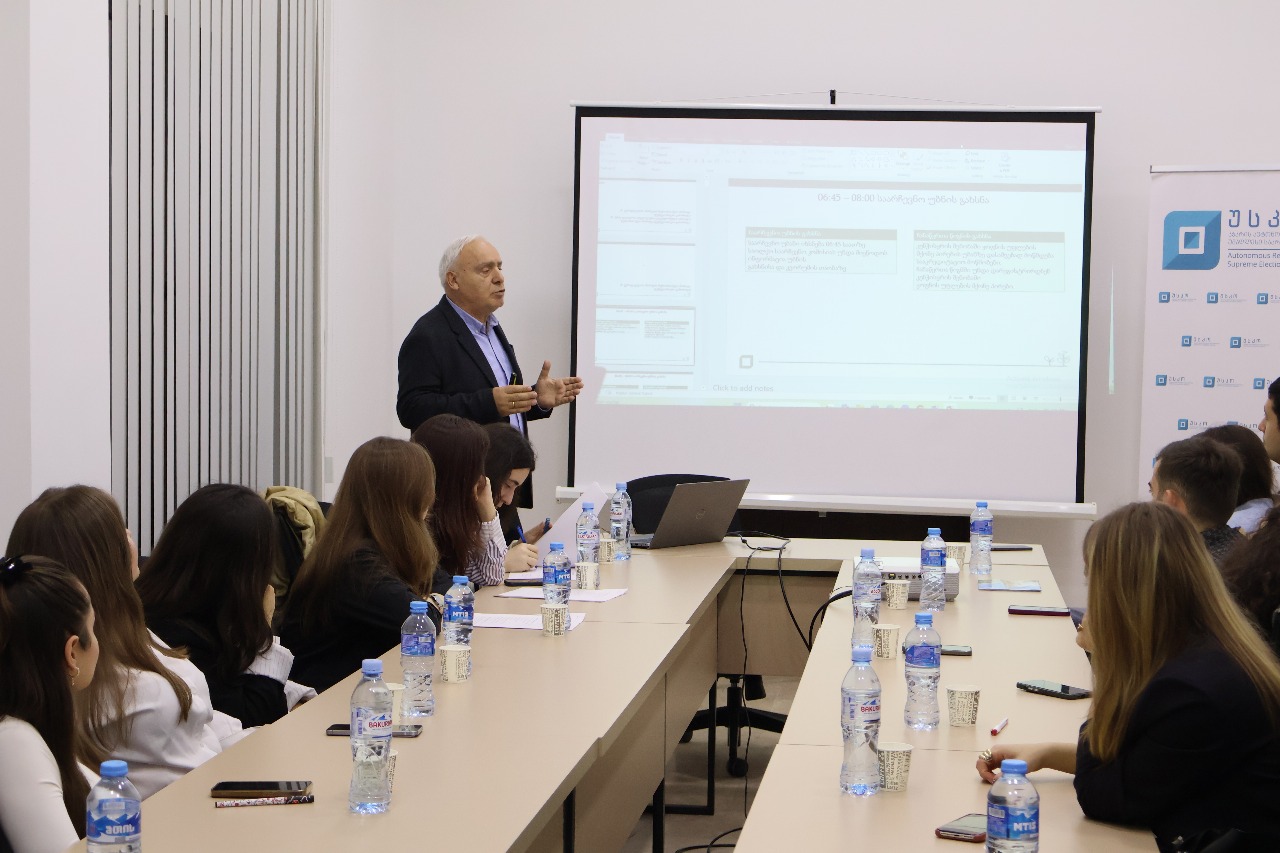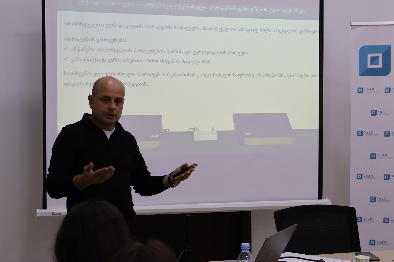 უსკოს წევრმა ირაკლი გვარჯალაძემ სტუდენტებს საარჩევნო პროცესში ტექნოლოგიურ ინტერვენციაზე ინფორმაცია მიაწოდა, ასევე მათთან კენჭისყრის დღის პროცედურები განიხილა.